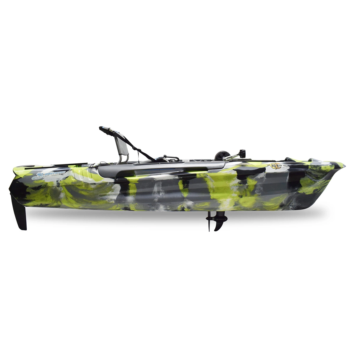 The Big Fish 108 Pedal Kayak is the newest edition to the popular Big Fish kayak series. This kayak was specially designed to accommodate the Pro Fish Pedal Drive, featuring the intuitive 8 Ball steering system, combined with the oversized Beaver Tail rudder for the ultimate propulsion experience.