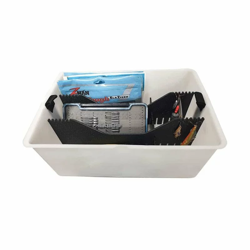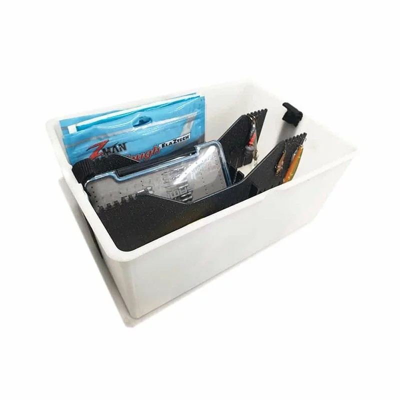 Sort your gear out! Rectangular Bucket Organiser contains an adjustable organiser to suit the rectangle hatch on a Hobie®. Change the width and length to suit your tackle with spots to hang your lures. Now that’s a Yipaah!