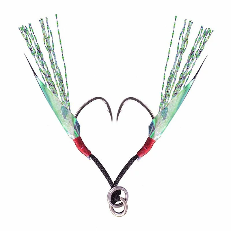 The Decoy Fiber Light Game Twin Jigging Hooks are perfect light twin assist hooks for micro jigging and shore jigging for light jigs. The added feature of the high gloss tinsel creates attention to the lure for aggressive species.