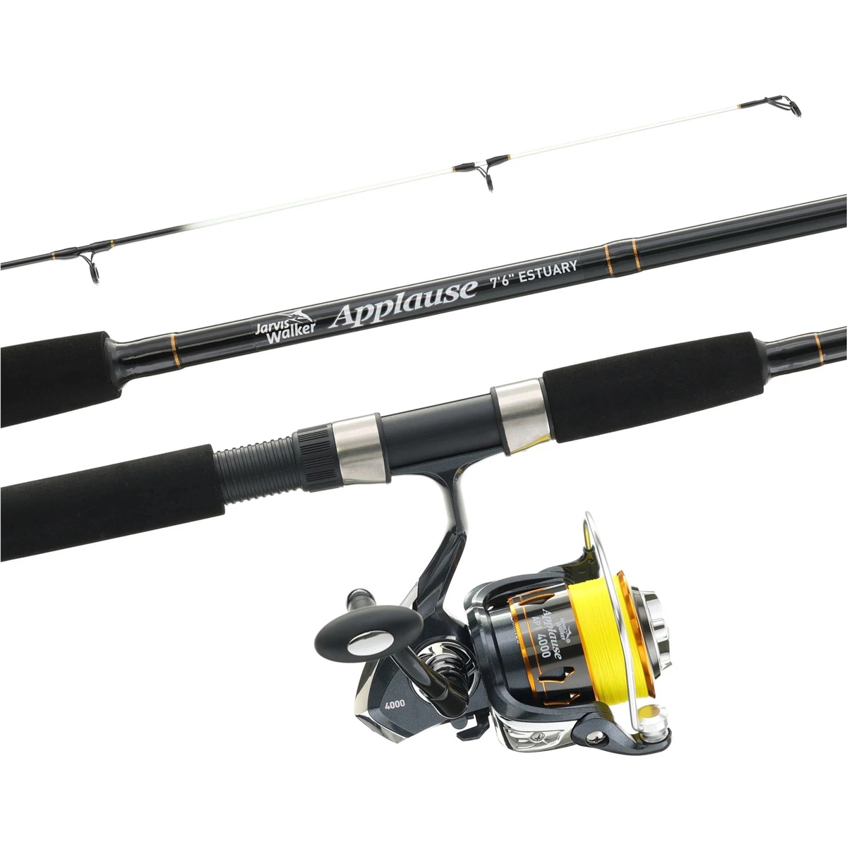 Jarvis Walker Applause Combos leap into the modern braided line era. Each combo includes a braid-ready reel, a heavy-duty inserted solid tip rod, and 150m of braided fishing line that is top-shot over monofilament backing.