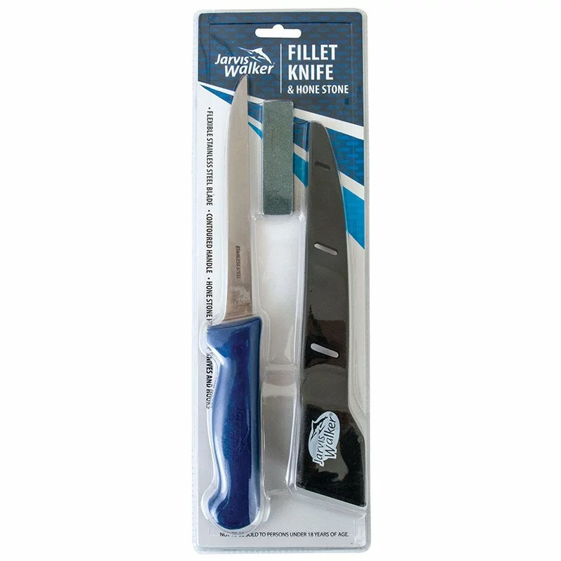 Jarvis Walker Fillet Knife and Hone Stone Packs are a favourite among both Aussie anglers and cooks. he knife is designed with a solid grip perfect for the precarious task of preparing fish. Jarvis Walker highly recommends a filleting glove when working with freshly caught fish.