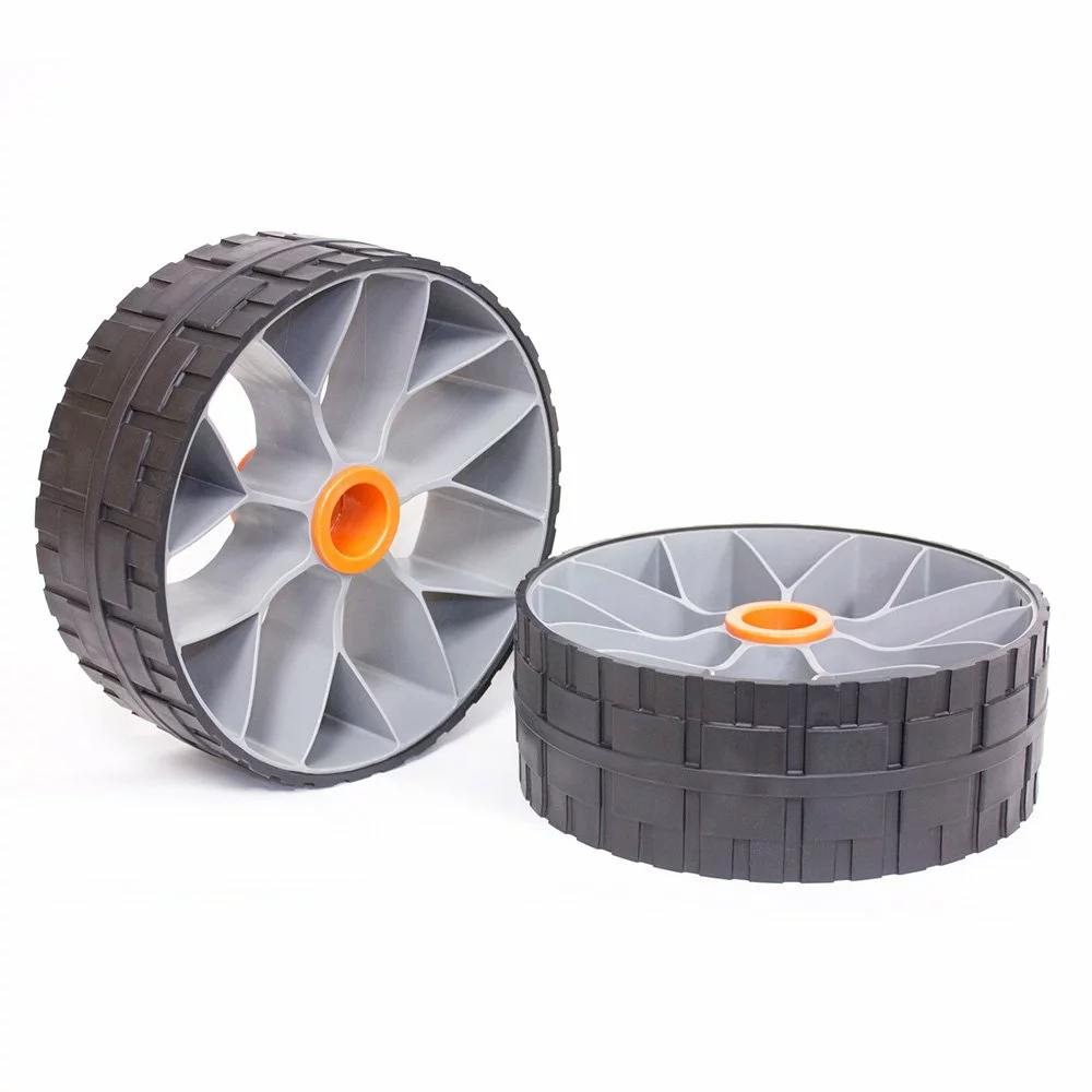 Got a flat? Or maybe your old Sea to Summit trolley wheels are just not good any more? Then you might want to consider upgrading the existing wheels on your Sea to Summit cart using these Solid Wheels. These moulded wheels feature a thermoplastic rubber outer surface for a smooth ride which are designed to withstand the most rugged terrain without the possibility of punctures. This kit includes 2 wheels and hub insert sleeves.