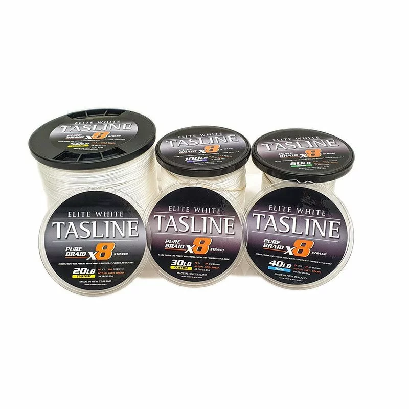 Except for the 8lb and 15lb, all Tasline Elite white braided fishing line is pure 8 strand braid, with no coatings or additives, leaving it silky smooth and supple for improved casting distance and extreme fishing like popping and jigging for trophy fish.