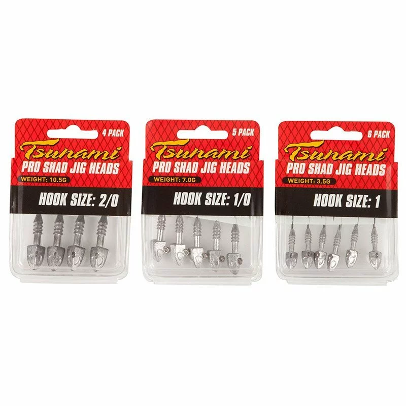 Enjoy exciting freshwater and saltwater fish catching action with a Tsunami Pro Shad Jigheads Pack stacked in your tackle box. Choose the hook size and pack that suits your tackle box needs best.